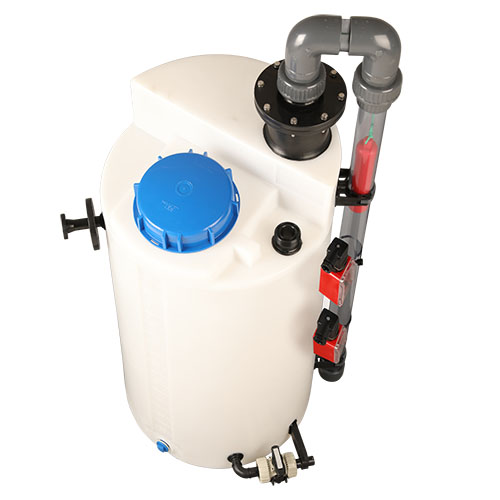 - geschlossener, runder, zylindrischer, stehender Behälter mit Schraubdeckel blau und Dichtung - Werkstoff: UV-Stabilisiertes Polyethylen, lebensmittelecht - Farbe: natur transparent - nahtlos im Rotationsschmelzverfahren hergestellt. - eingeformte Literskala und mitgeformte Montagebrücke für Dosierpumpen, Rührwerke, Handstampfmischer, Handrührwerke etc. - stoß- und schlagfest - 3/4" Auslauf (Innengewinde) mit Stopfen, Auslauf nicht aufgebohrt ausgerüstet mit: - seitlich eingeschweißtem PE Stutzen mit V-Bund und PP/ST Flansch DN 15, d 20 mm - oben aufgeschweißten Verschraubungsanschluss aus PE, DN 25, d 32 mm - innenliegendes Führungsrohr aus PE mit Schwimmer, Anzeige erfolgt über Seilzug und außenliegender Füllstandsanzeige aus PVC Transparent mit PP Schwimmer und 2 Stück Bi-stabile Schwimmerschalter Typ BSM - aufgeschweißte PE Rohrklemmen aus PE zur Aufnahme der Füllstandsanzeige - eingeschweißtem PE Bogen mit 2- Wege Ablaufkugelhahn DN 15, da 20 mm aus PP/EPDM und aufgeschweißter PE Rohrklemme Andere Ausführungen auf Anfrage kurzfristig möglich. |