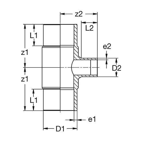 Außendurchmesser und Wanddicke entsprechend EN 1555 und EN 12201. Toleranzen bei den Z-Maßangaben sind abhängig von der Dimension. Bis d/D 160 = +/- 3 mm. Ab d/D 180 = +/- 10 mm.