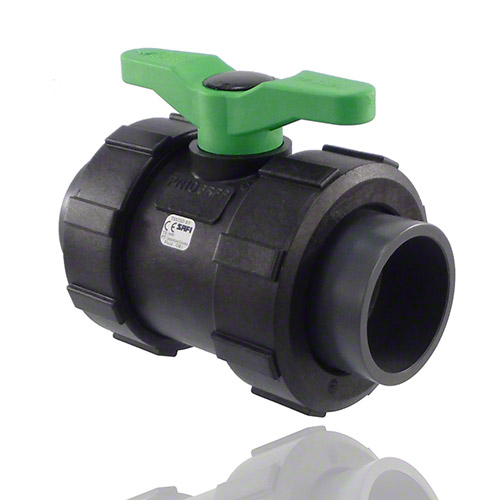 2-Wege-Kugelhahn PPGF, PVC-U-Klebemuffen, FPM = grüner Hebel