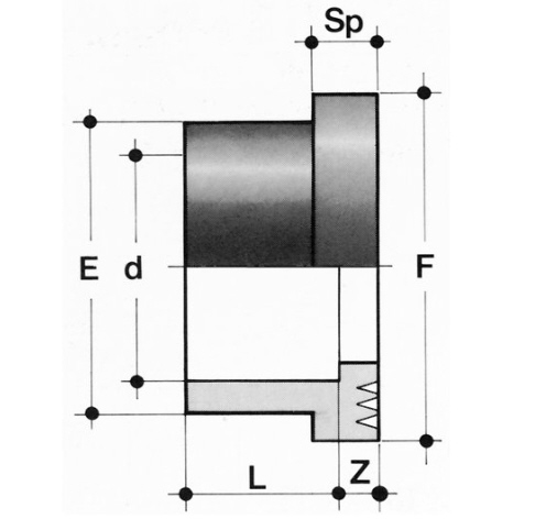 PVC-C Bundbuchse , Dichtfläche gerillt, Klebemuffe